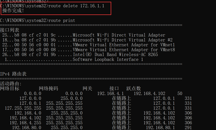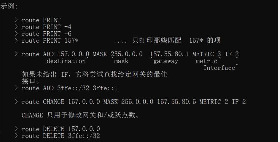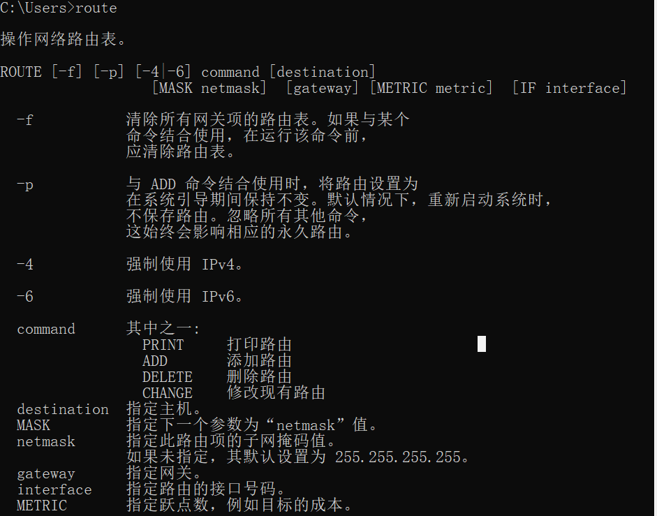 显示并修改本地IP路由表中的输入。无参数使用,路径显示帮助。