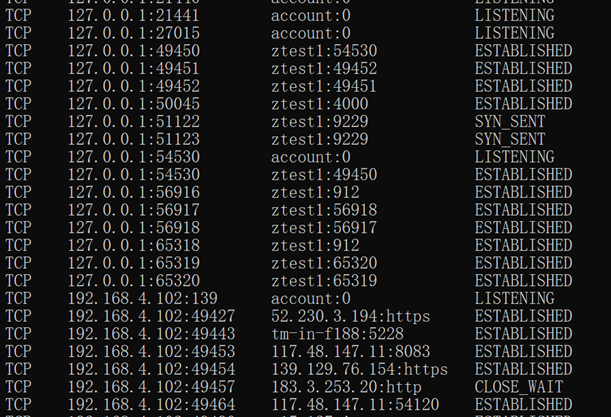 显示所有活动的TCP连接以及计算机正在侦听的TCP和UDP端口。