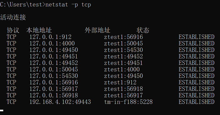 显示协议指定的协议的连接。 在这种情况下,协议可以是tcp,udp,tcpv6或udpv6