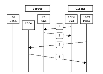 然后客户端会随机取用一个大于1024的端口号来进行对主机的port pasv连接。如果一切都没有问题的话,那么FTP数据就可以通过客户端的随机端口和服务端的port pasv来传送了。