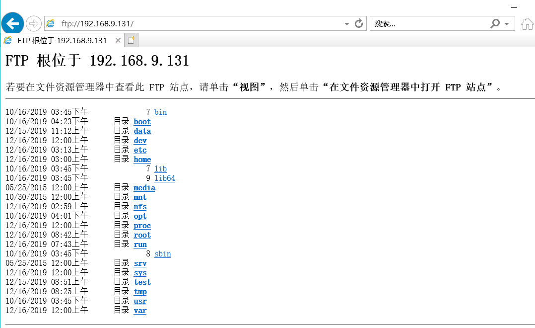 在重启vsftpd服务后,就可以使用浏览器访问ftp服务: