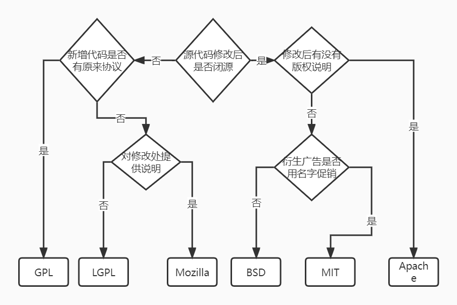 1 图文并茂解释开源许可证 GPL、BSD、MIT、Mozilla、Apache和LGPL的区别?