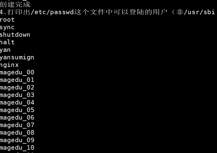 4. 打印出/etc/passwd这个文件中可以登陆的用户(非/usr/sbin/nologin)