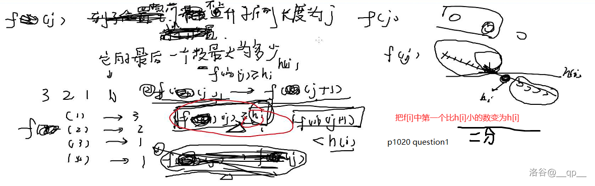 3. 如果 $ f[j] < h[i] $,那么它们不能与 $ h[i] $ 拼成一个不上升子序列。