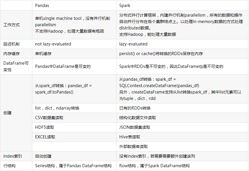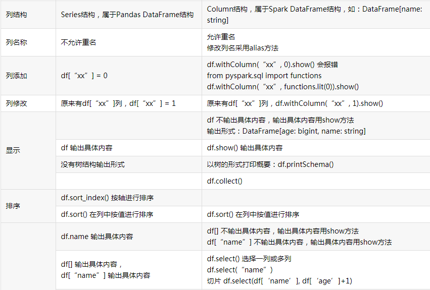 4.观察Spark的DataFrame与Python pandas的DataFrame有什么异同?