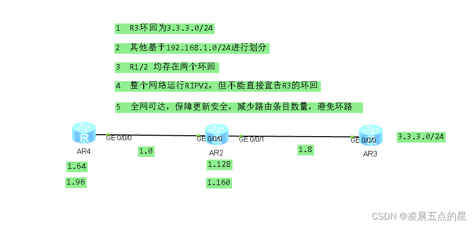 4、整个网络运行RIPV2,但不能直接宣告R3的环回