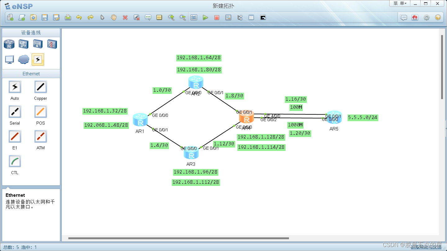 1、除R5环回地址固定外,整个其他所有的网段基于192.168.1.0/24进行合理的IP地址划分