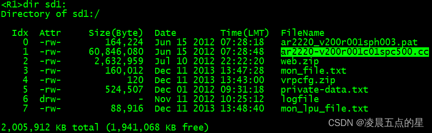 AR2200的VRP软件名为:sd1:/ar2220-v200r001c01spc500.cc