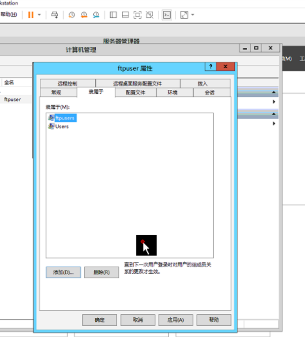 刚建的ftpuser右键属性——隶属于——添加ftpusers