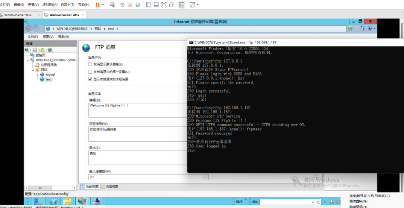 在IIS管理器中的test目录下——选择右侧FTP消息——打开编辑如下: