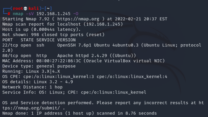 nmap -sV 192.168.1.185 -O //开放22与80端口