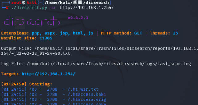 ./dirsearch.py -u http://192.168.1.254/ //用dirsearch进行目录扫描