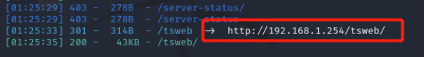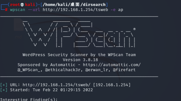 wpscan --url http://192.168.1.185/tsweb -e ap //使用wpscan工具进行漏洞扫描