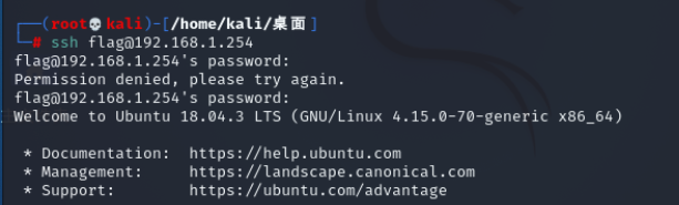 ssh flag@192.168.1.254 password:topsecret