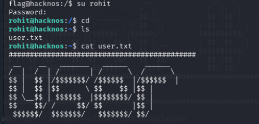 su rohit cd ls cat user.txt