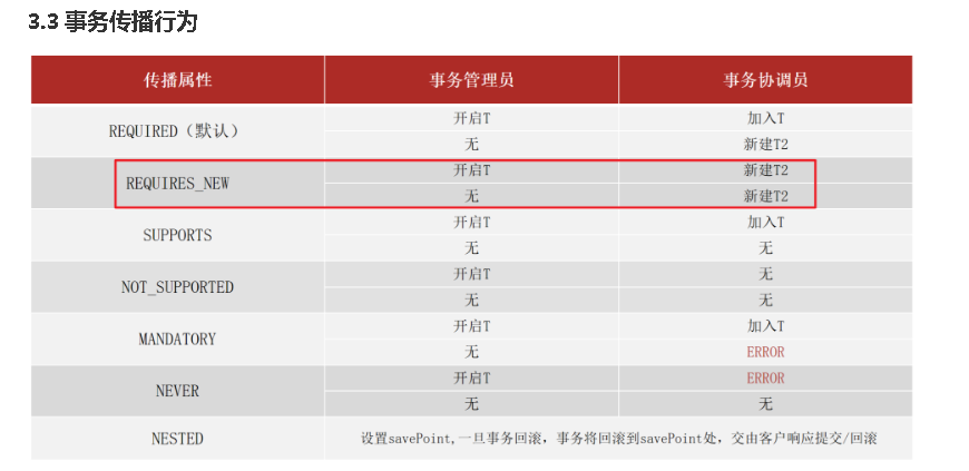 事务传播行为:事务协调员对事务管理员所携带事务的处理态度