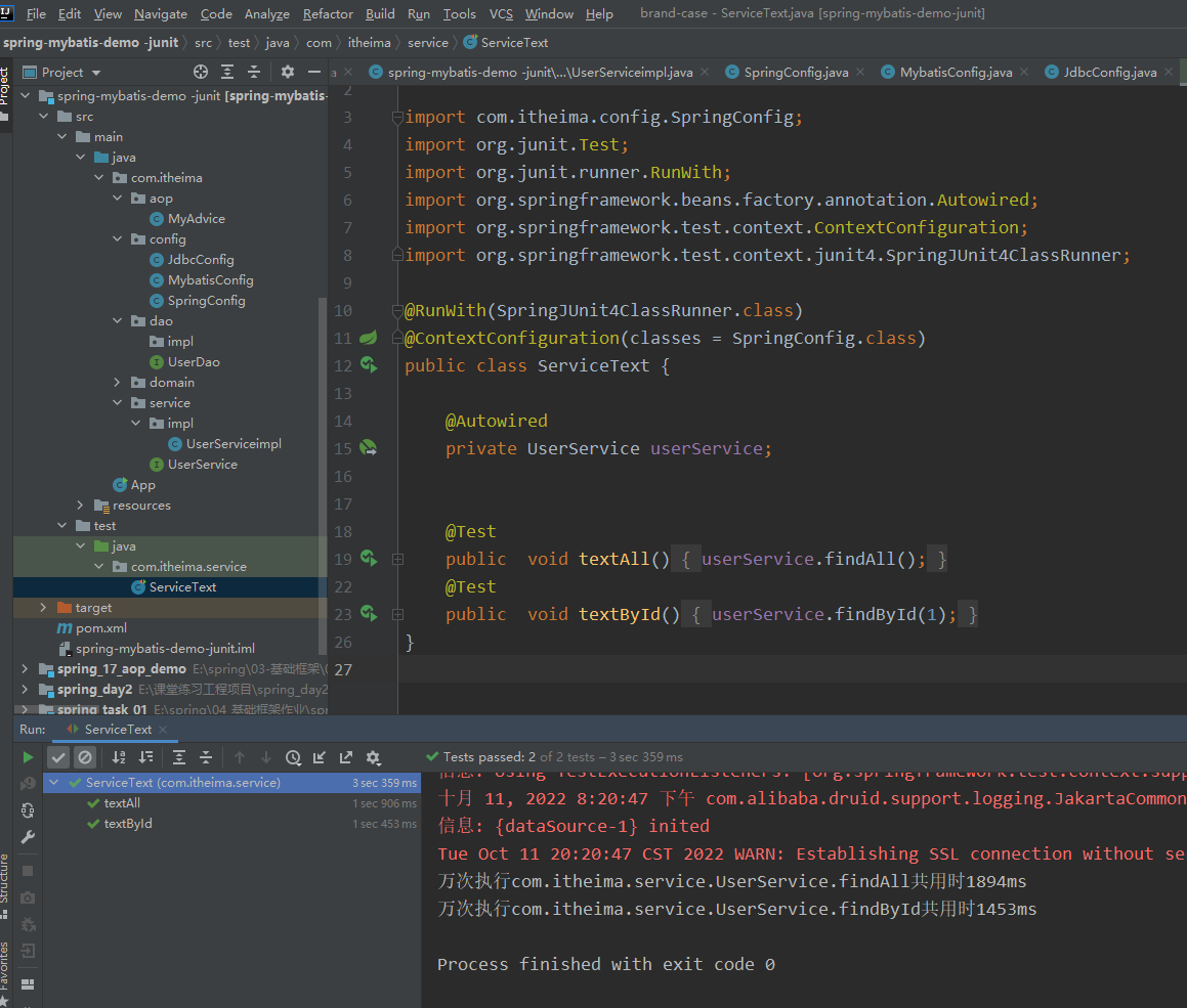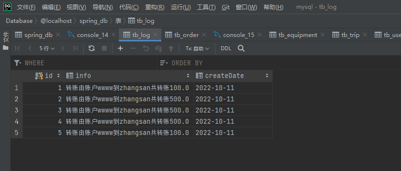 - 这里使用到的注解有@Transactional 此外还需要在对应的jdbcConfig文件中编写一个bean
