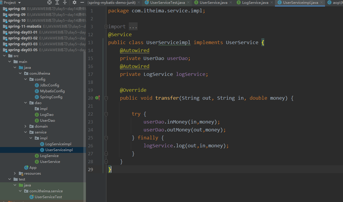 注解式事务可以添加到业务方法上表示当前方法开启事务,也可以添加到接口上表示当前接口所有方法开启事务