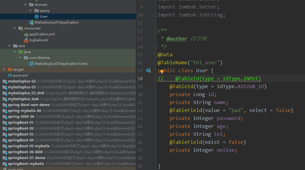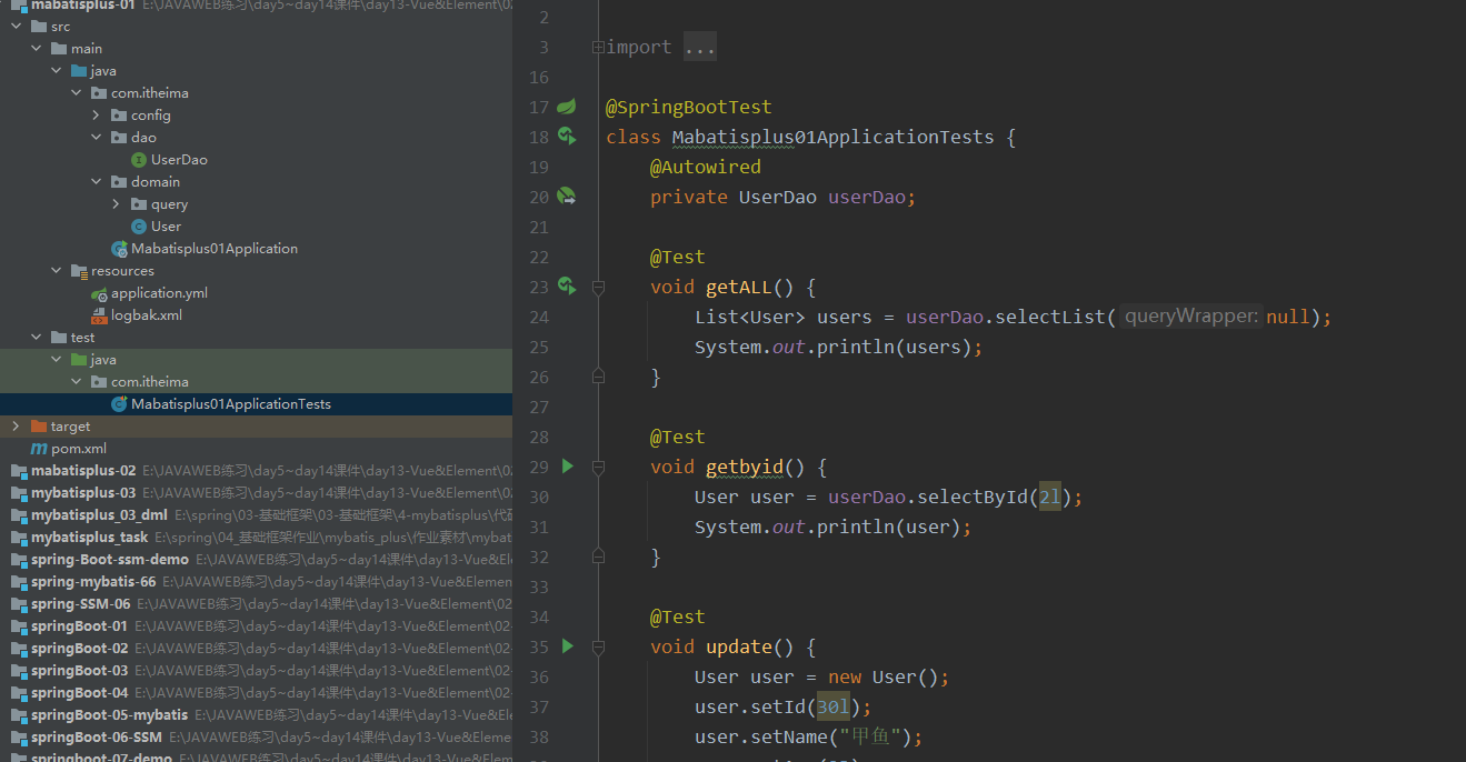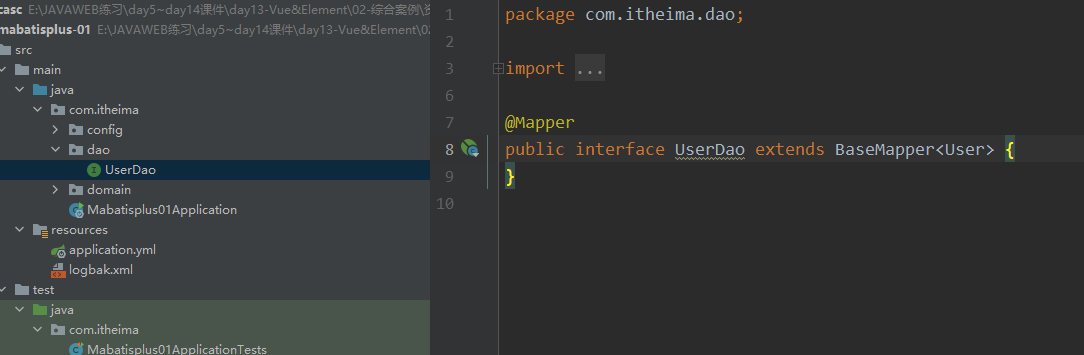 这是一整套流程 首先在dao层继承basemapper<实体类泛型> 然后在实力类中加@data注解 就可以节省写set get tostring 方法 这里data注解不包括有参构造