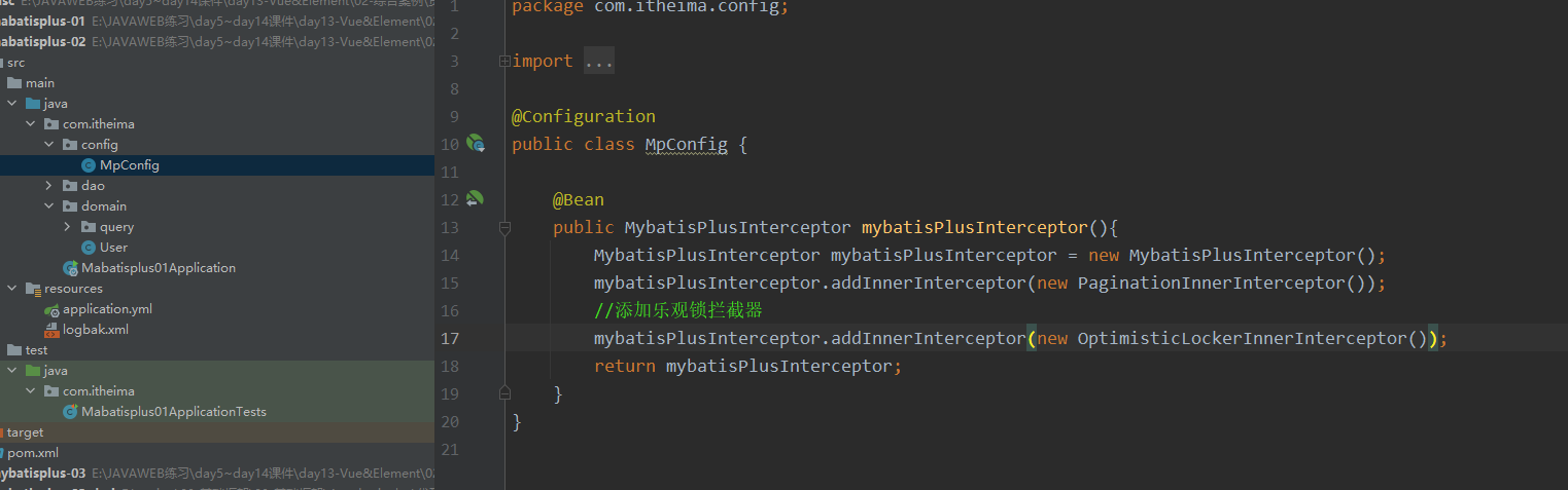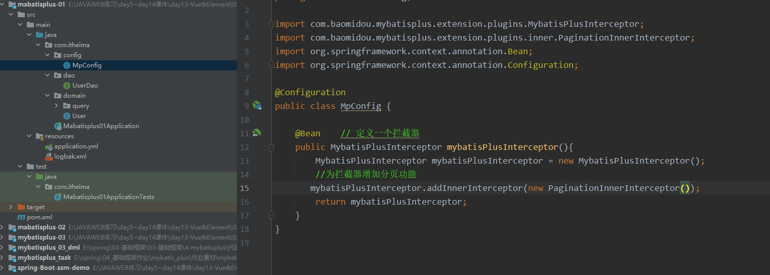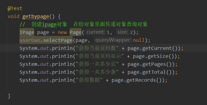 首先先配置一个拦截器 增加分页查询的功能 然后在测试方法中先创建ipage对象 传递对应要查的页码和条数