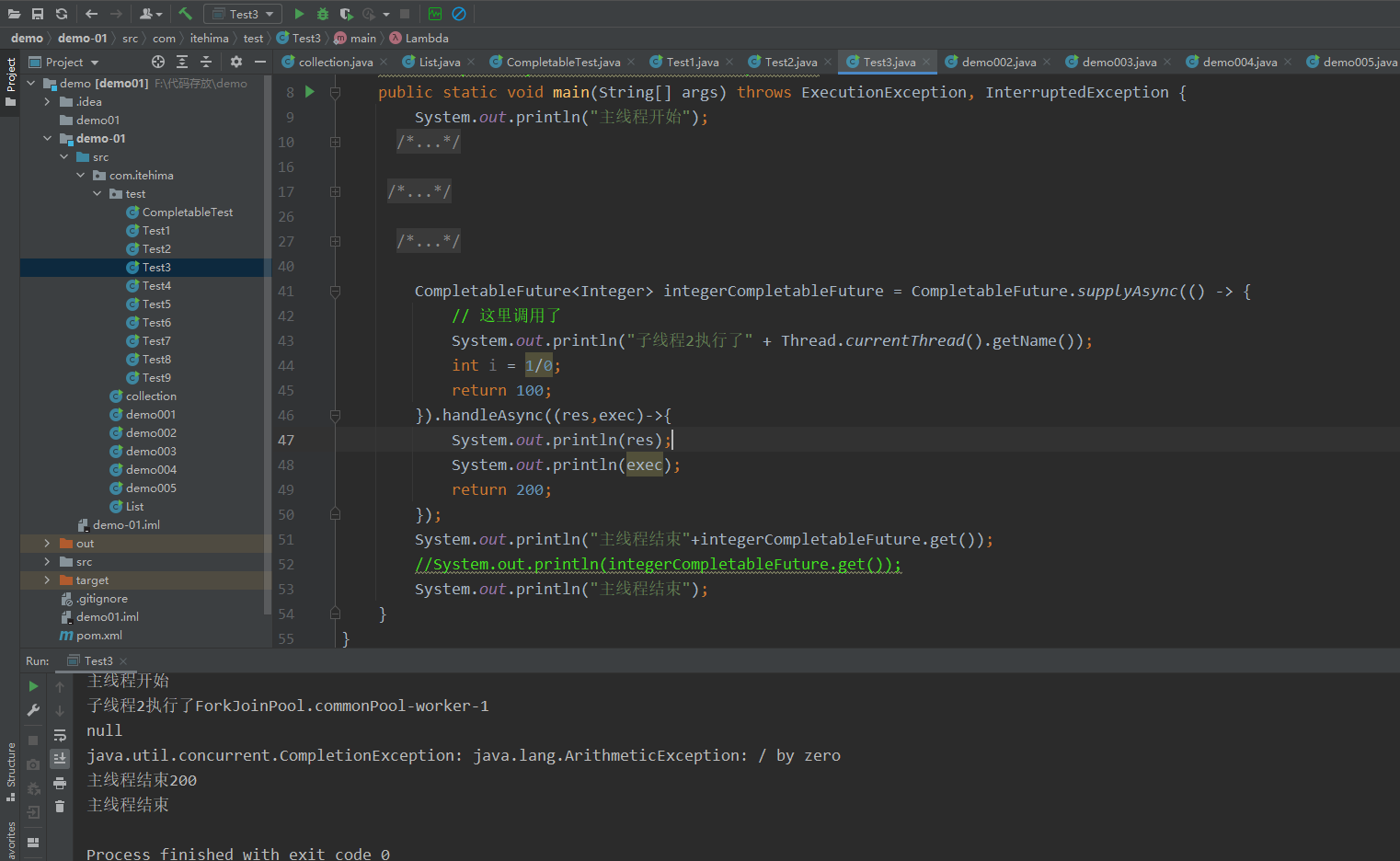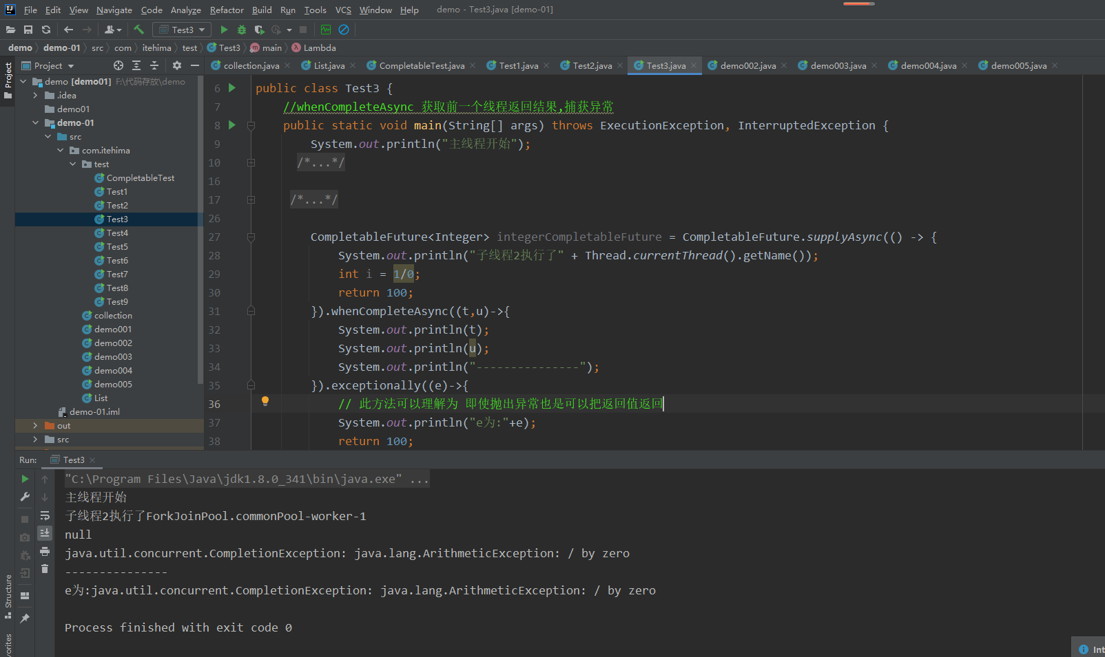 exceptionally 可以在抛出异常的情况下获得上一个线程的返回值