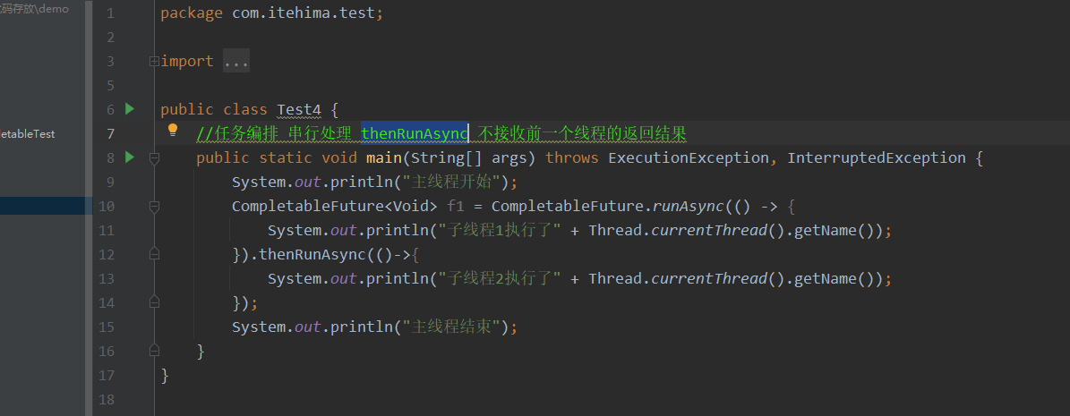 thenRunAsync 此方法一般都紧接上一个线程 不接受上个线程的返回结果