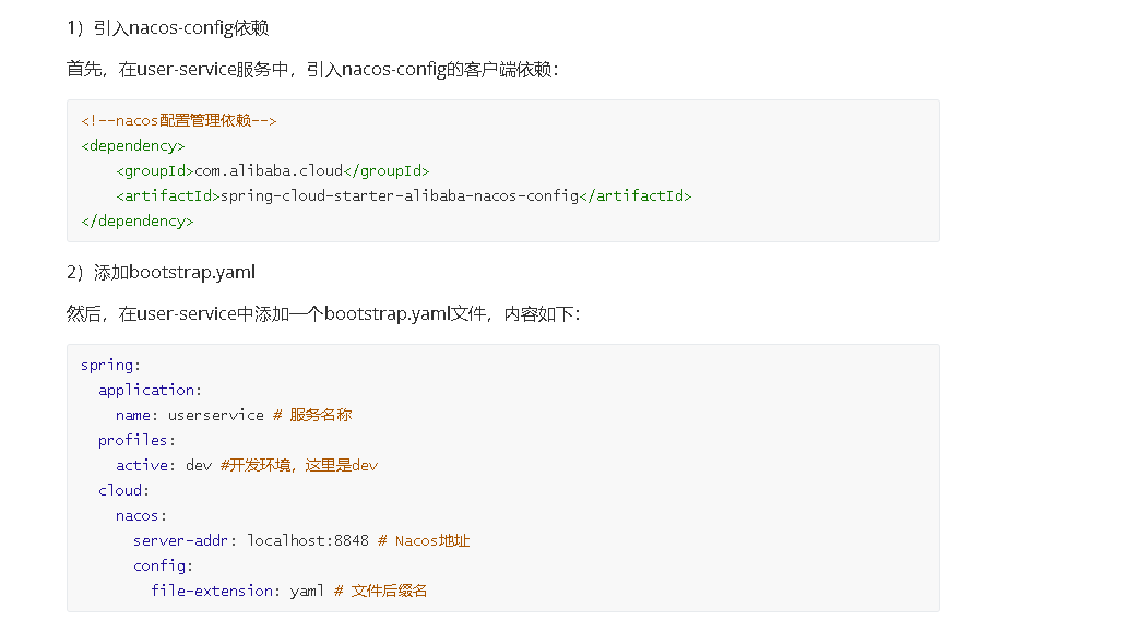 Nacos 作用是注册中心 默认端口为8848 启动命令是 startup.cmd -m standalone 开发步骤 首先在父工程代入坐标 先配置类 子工程中导入坐标写配置类