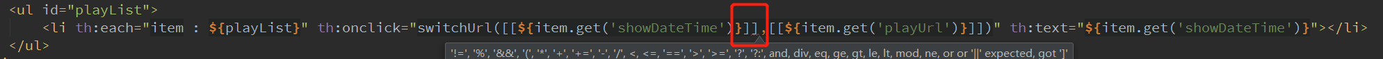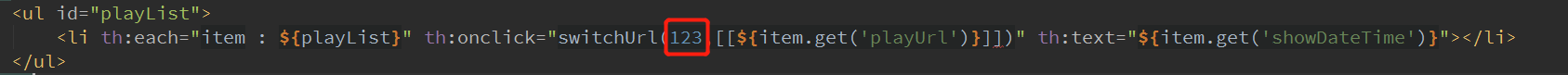 <li th:each="item : ${playList}" th:onclick="switchUrl([[${item.get('showDateTime')}]],[[${item.get('playUrl')}]])" th:text="${item.get('showDateTime')}"></li>