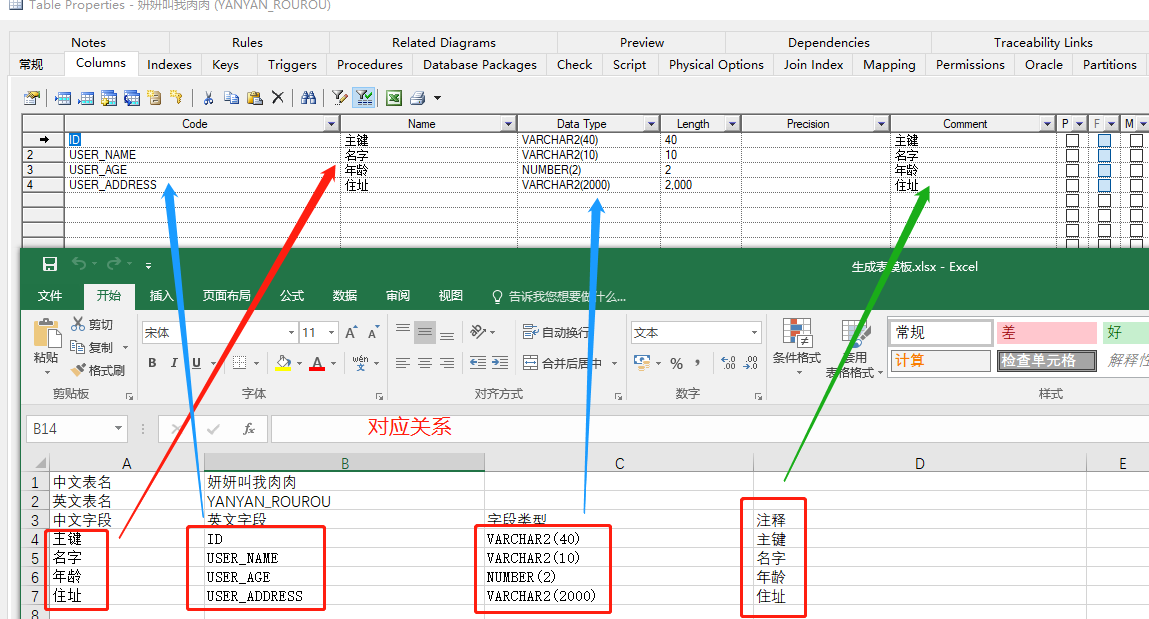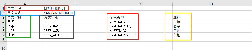 模板与将来的表结构对应关系如下图所示