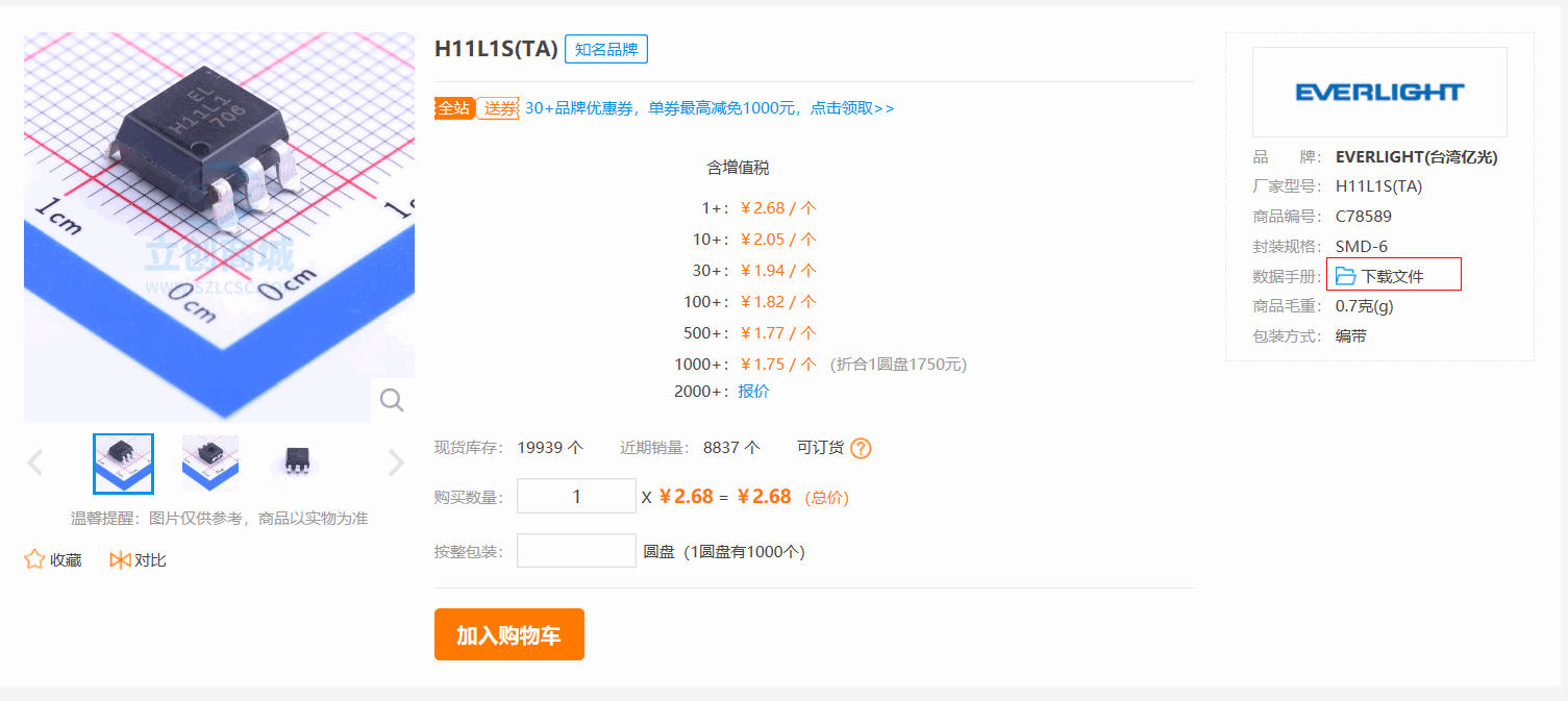 打开想要下载封装的元器件,点击网页右侧的下载文件。