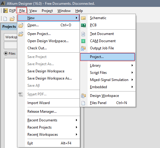 打开AltiumDesigner,新建一个工程,工程名称就是最终生成集成库的名称。