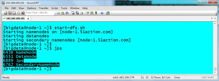 可以正常启动,并且执行jps命令后多了NameNode、DataNode和SecondaryNameNode进程,说明HDFS启动成功!