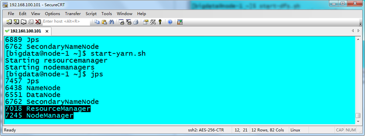 可以正常启动,并且执行jps命令后多了ResourceManager、NodeManager进程,说明YARN启动成功!