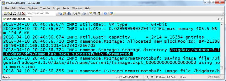 上面五个配置文件修改完成后,就可以初始化HDFS文件系统了,在命令行中执行下面的命令