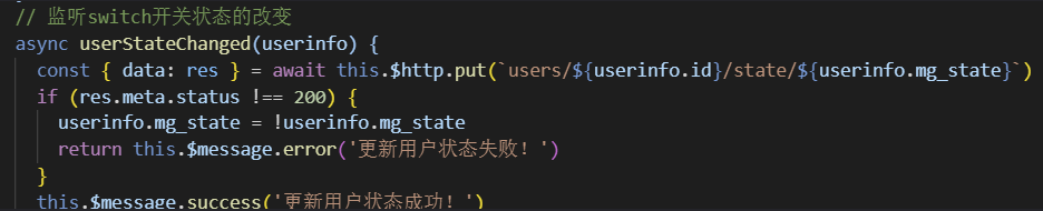 在函数内我们将传递过来的参数作为我们请求的参数,通过 put 方式修改我们的后台数据
