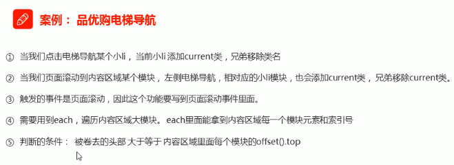 //页面滚动到某个内容区域 左侧小li添加和删除current类名
