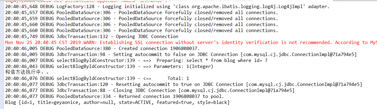 Blog biog = blogMapper.selectBlogByIdConstructor(1);