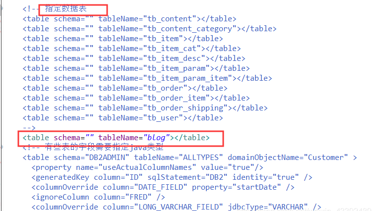 <table schema="DB2ADMIN" tableName="ALLTYPES" domainObjectName="Customer" >