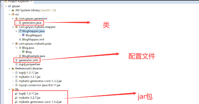<javaClientGenerator type="XMLMAPPER" targetPackage="com.geyao.mybatis.mapper" targetProject=".\src">
