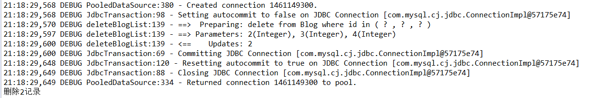 System.out.println("删除的"+count+"记录");