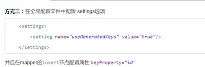 <selectKey resultType="java.lang.Integer" order="AFTER" keyProperty="id">