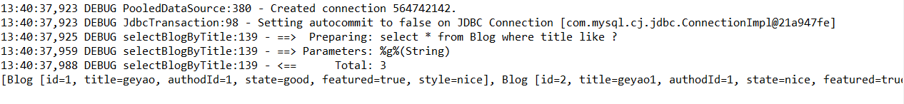 List<Blog> blogList = blogMapper.selectBlogByTitle("%g%");