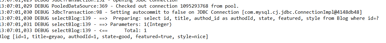 Blog blog =(Blog)session.selectOne("com.geyao.mybatis.mapper.BlogMapper.selectBlog", 101);