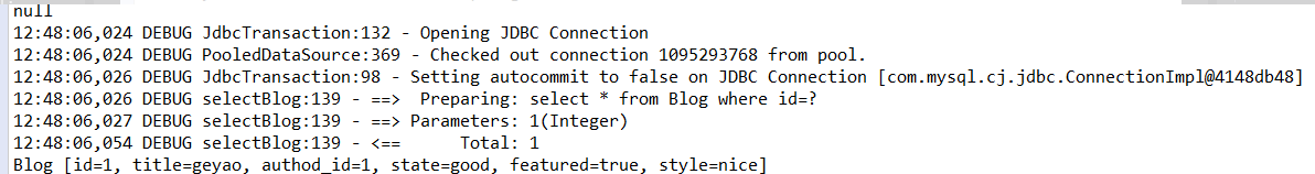 Blog blog = blogMapper.selectBlog(1);