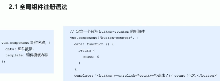 template: '<button @click="count++">点击了{{count}}次</button>'