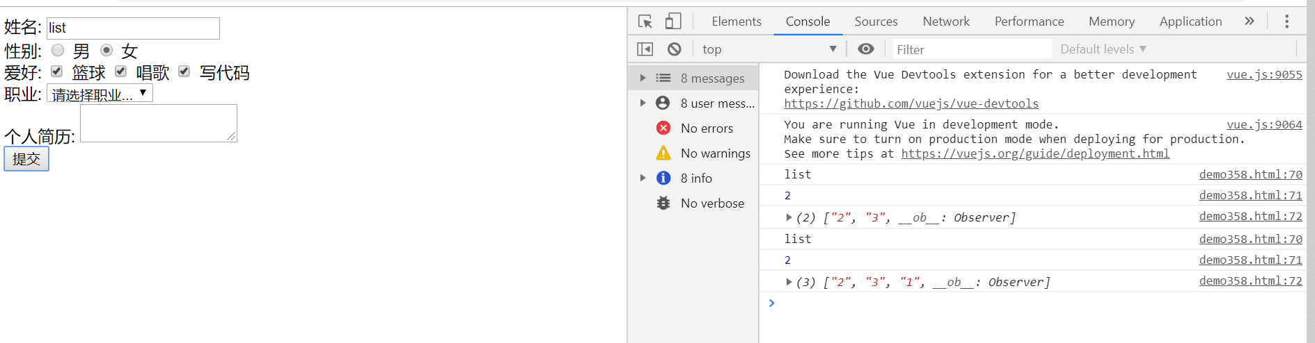 <input type="checkbox" id="sing" v-model='hobby' value="2">