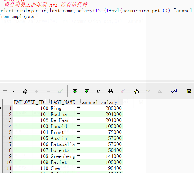 select employee_id,last_name,salary*12*(1+nvl(commission_pct,0)) "annnal salary"