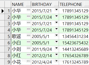 --查找姓名,生日,电话号码按照电话号码的最后两个字段排序