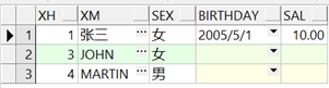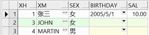 INSERT INTO student(xh, xm, sex, birthday) VALUES (004, ‘MARTIN’, ‘男’, null);
