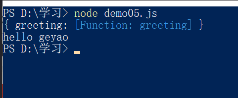 console.log(a.greeting(`geyao`));
